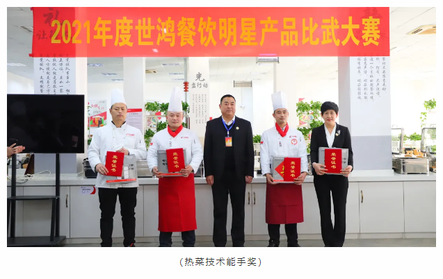 厨艺比赛分为热菜组和面点组两项比赛,每位选手都是精心准备、认真制作,激烈对决,缤纷呈现,将这一年的努力付出和用心态度都带入参赛作品中。经过评委们严谨认真的评审后最终评选出热菜组和面点组的前三名和技术能手奖。颁奖环节是最令人激动的环节,每一位获奖者由颁奖嘉宾用鲜花邀请至主席台,现场尽是大家热情的祝贺和掌声,充满仪式感的颁奖环节令世鸿的家人们开心而感动。大赛是对各项目厨艺基本功的检验,同时利用这个平台可以使大家相互取长补短,厨艺技能得以提升。新的一年,狗子28将紧跟时代步伐,不断推陈出新。做高品质团餐,更好的服务于社会。